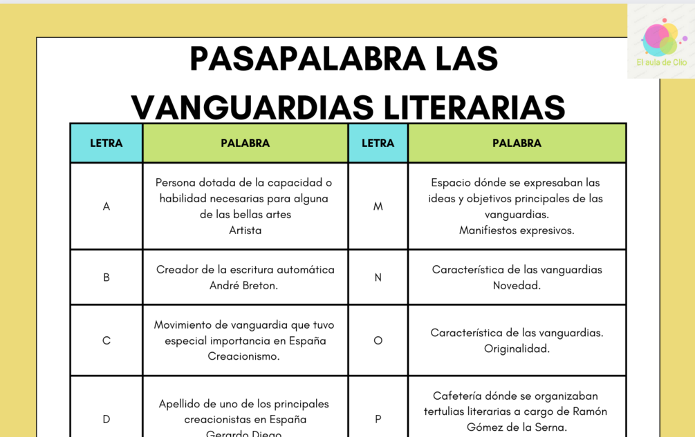 Pasapalabra que nos servirá para repasar de forma divertida las vanguardias literarias.