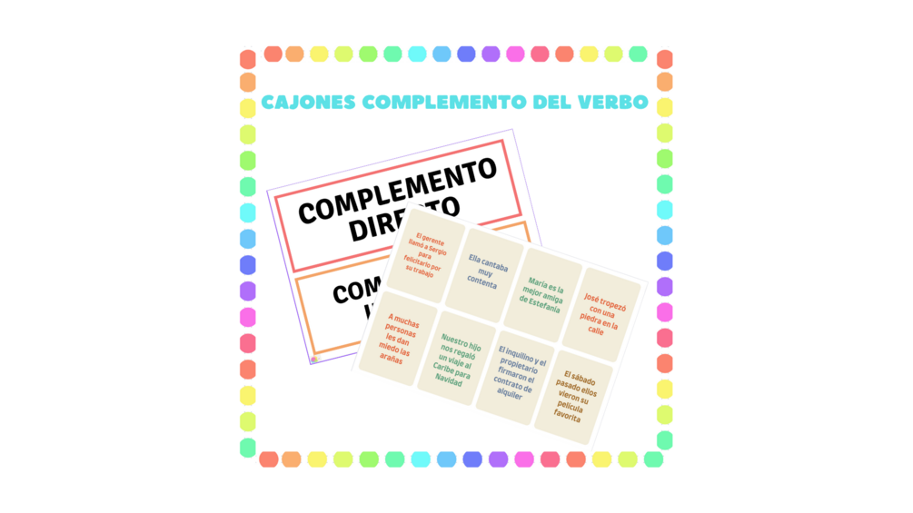 El objetivo es que los alumnos introduzcan las diferentes oraciones en el cajón del complemento del verbo correspondiente.